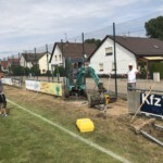 Zunächst wurden die Banden freigeschnitten , danach begann man mit dem Erdaushub für die Fundamente. Es wurden Schalungen für die beiden Fundamente gebaut, so dass der Größe der Spielerkabine entsprechende Fundamente betoniert werden konnten. Zum Abschluss wurden die Kabinen auf den Fundamenten montiert. Kleinere Restarbeiten sind noch fällig, es werden noch Kunstrasenstreifen vor den Spielerkabinen verlegt, außerdem müssen noch Arbeiten an den Werbebanden abgeschlossen werden. Anbei einige Bilder von den Arbeiten rund um das Crowdfunding. Danke nochmals an alle fleißigen Helfer und Spender für die Unterstützung!