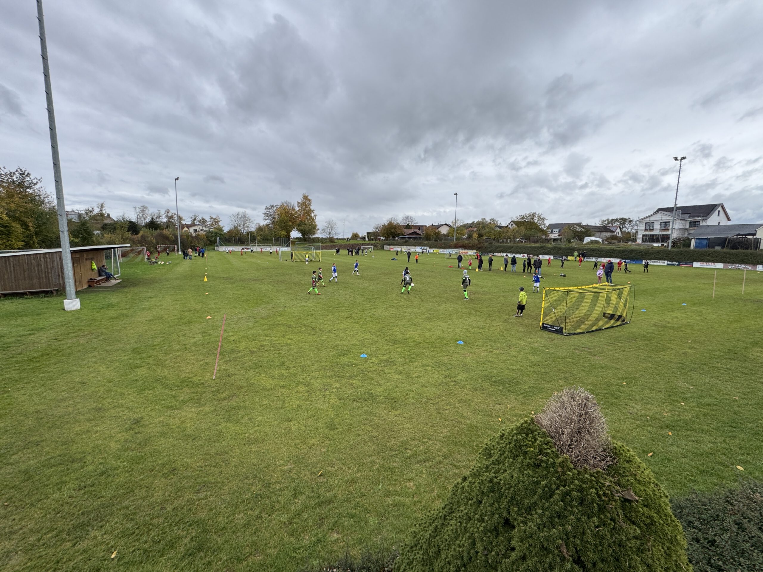 In Staudheim war man am Samstag Gastgeber des letzten 5v5 Festivals in dieser Hinrunde. Zu Gast waren die Vereine von der SG Holzheim/Münster (2 Teams), dem FC Zell-Bruck (2 Teams), die SG Untermaxfeld/Ludwigsmoos (2 Teams) und die SG Oberhausen (1 Team). Selbst hatte man 12 Spieler zur Auswahl und trat ebenfalls mit 2 Teams an. Da es diesmal eine ungerade Anzahl an Teams gab (9) hatte man die Herausforderung, die jeweils aussetztenden zu koordinieren. Man trat in 7 Runden mit je 10 Minuten Spieldauer auf 4 Feldern gegeneinander an. Da es für den Fall der ungeraden Teams bisher keine ideale Lösung von DFB bzw. BFV gibt, entschied man zusammen, daß man vom Stärksten zum Schwächsten Spielfeld immer gezielt ein Team pausieren lässt und dieses somit wieder (halbwegs) auf das Spielfeld zurückkommt, wo es sich vor der Pause „qualifiziert“ hat. Dies hatte dann zudem den Vorteil, dass man gezielt Duelle gegen die eigene Mannschaft vermeiden konnte und auf den schwächsten Feldern die Kinder 1 Spiel mehr hatten und somit auch mehr Spielpraxis. Letztendlich ist dies ganz gut gelungen und unsere Teams fanden sich bei teilweise wiedrigen Wetterverhältnissen am Ende auf den Plätzen 1 und 3 in diesem relativ ausgeglichenen Festival wieder.